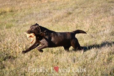 Timber is our newest English Lab addition to the boys at Family Loved Labs. He is a gorgeous, dark chocolate Labrador with an incredible temperament. He recently achieved his CGC title (yay Timber!) and is working towards his Therapy dog title. He loves people - is a snuggly and cuddly boy that absolutely adores everyone. He LOVES visiting the residents at the nursing home with Nick and is always so nice to bring places with his cool, calm demeanor and confident personality. Timber has a nice thick coat, beautiful blocky head, tons of bone, and is overall a well built boy. He likes to retrieve and is very smart. We are LOVING the pups he's producing here at FLL.